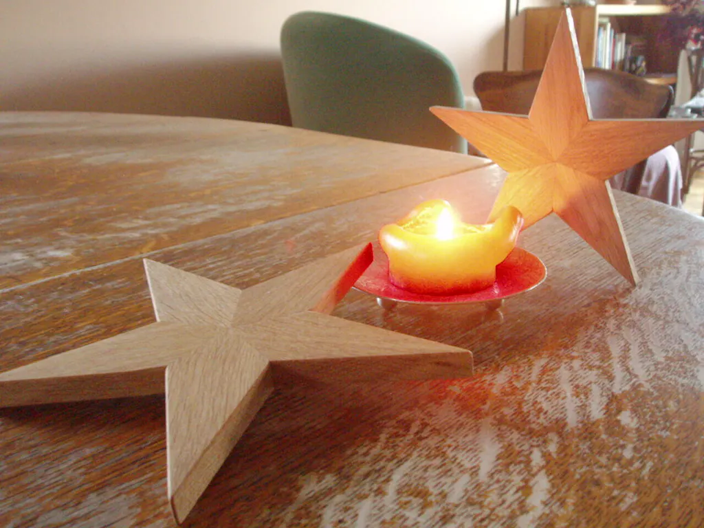 Dieser handgefertigte Holzstern aus Eiche sorgt schon in der Vorweihnachtszeit für eine warme, natürliche Atmosphäre – perfekt als Tischdeko, Fensterstern oder Wanddekoration.